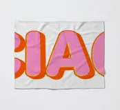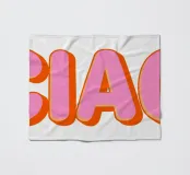 Questo vivace design presenta la parola "Ciao" in un audace carattere di ispirazione retrò con caratteri rosa acceso e un sorprendente contorno arancione.