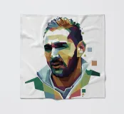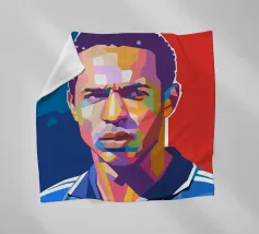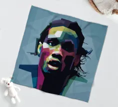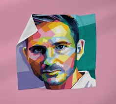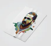 Coco in stile WPAP è un ritratto geometrico audace e colorato del famoso calciatore francese. Utilizzando tinte vivaci e forme spigolose, l'opera d'arte WPAP (Wedha's Pop Art Portrait) cattura la calma determinazione e il look iconico di Coco, riflettendo la sua eleganza, forza e abilità sul campo da calcio.