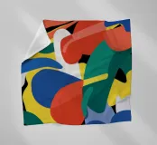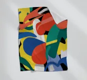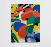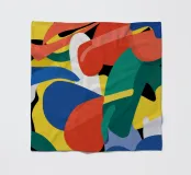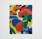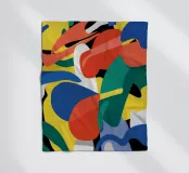 Un'energica opera d'arte astratta in cui forme audaci nei colori primari del rosso, del blu e del giallo si scontrano e si sovrappongono. La composizione è dinamica e giocosa, con un forte impatto grafico che ricorda i maestri moderni.