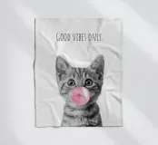 Questo gatto ha semplicemente tutto: fresco, elegante e con un tocco di coolness! Con la sua bolla di sapone rosa e il suo sguardo innocente, diffonde puro buonumore ed è il motivo perfetto per chiunque ami l'energia positiva e l'umorismo. Il design moderno e minimalista combina una sottile illustrazione in bianco e nero con un fresco accento rosa; semplice ma espressivo. Un must per i fan dei gatti, per gli amanti del design e per chiunque voglia farsi notare: casual, moderno e con un pizzico di umorismo.
