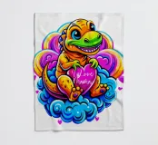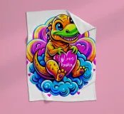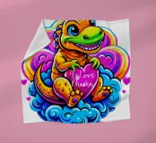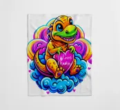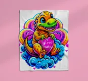 Questo dolcissimo dinosauro vuole diffondere l'amore, stringendo con gioia un cuore rosa acceso e fluttuando su un letto di nuvole colorate. Con i suoi grandi occhi luminosi e la sua espressione giocosa, questo dino porta un fascino irresistibile in ogni ambiente. Le vibranti tonalità di arancione, verde e rosa lo rendono una delizia visiva per gli amanti dei dinoidi di tutte le età. Che si tratti di una simpatica aggiunta al vostro arredamento o di un regalo divertente, questo adorabile dinosauro è pronto a condividere sorrisi e calore!