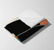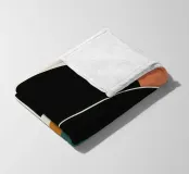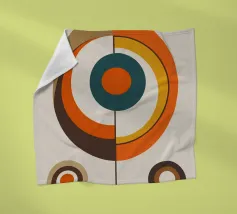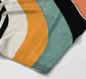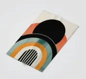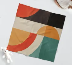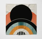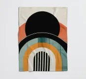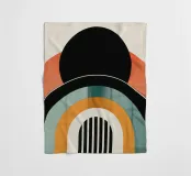 Questo design artistico combina il nero deciso e i toni della terra con le vibranti sfumature del blu e dell'arancione. Le forme geometriche chiare e gli archi creano un fascino moderno e retrò e si adattano perfettamente agli spazi scandinavi o minimalisti. Come murale, cuscino o poster, il motivo crea un accento elegante e aggiunge carattere e calore agli ambienti. Un elemento decorativo unico per gli amanti del design e dell'arte che apprezzano l'estetica moderna.