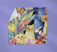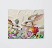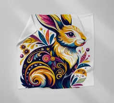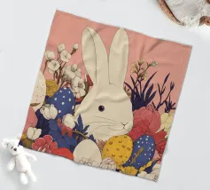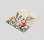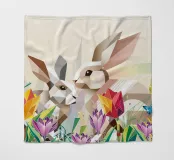 Due coniglietti pasquali stilizzati tra fiori colorati, pulcini e farfalle: un motivo allegro in stile poligonale, ideale per il periodo pasquale e l'inizio della primavera. Due coniglietti geometrici come motivo centrale Fiori primaverili colorati e crochi Inclusi simpatici pulcini e farfalle svolazzanti Design moderno e giocoso per la Pasqua Ideale per prodotti stagionali dal sapore primaverile