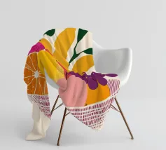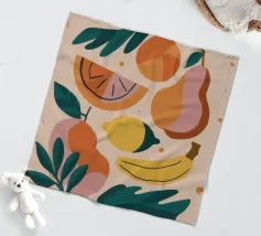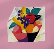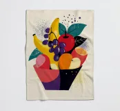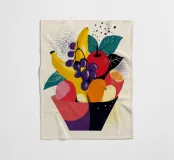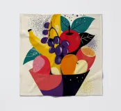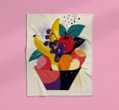 Un vivace mix di frutta dai colori vivaci in uno stile moderno e astratto. Questa vibrante illustrazione evoca freschezza e golosità, perfetta per ravvivare gli interni con un tocco di vitalità.