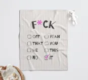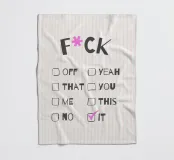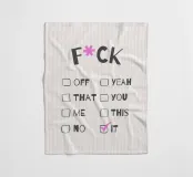 Un pezzo tipografico sfacciato e motivazionale per le giornate "da fare". Il titolo censurato "F*ck" si trova sopra le caselle di controllo disegnate a mano "OFF, THAT, ME, NO, YEAH, YOU, THIS" con un segno di spunta rosa acceso. Perfetto per uffici, studi, dormitori o pareti di gallerie; un regalo divertente per gli amici con senso dell'umorismo.