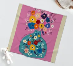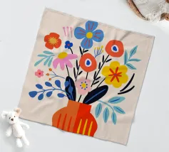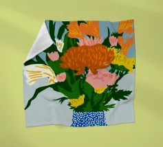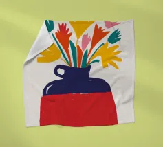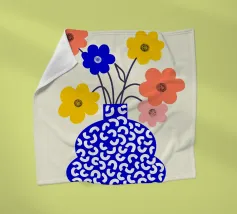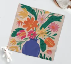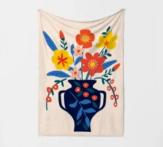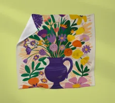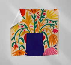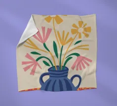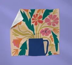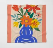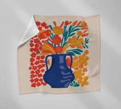 Questo allegro motivo floreale mostra un vaso blu stilizzato pieno di fiori colorati in arancione, rosso, giallo e rosa, incorniciato da una calda tonalità corallo. Il disegno irradia gioia di vivere e armonia ed è perfetto per murales, cuscini, tazze, cover per cellulari e altro ancora. Ideale per chi ama un'estetica fresca e moderna e desidera ravvivare la propria casa con accenti colorati e naturali. Questa composizione floreale senza tempo si adatta a qualsiasi ambiente e a qualsiasi stile di casa.