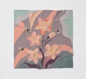 Il disegno dettagliato presenta una varietà di fiori vivaci visitati da api indaffarate.