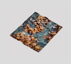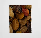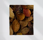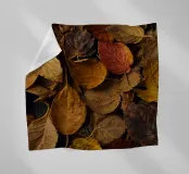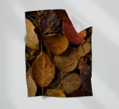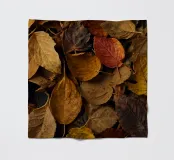 Varie tonalità di foglie autunnali ricoprono il terreno, mostrando un mix di gialli, marroni e rossi tipici del tardo autunno. Questo tranquillo spettacolo della natura evoca il cambiamento stagionale e la bellezza.