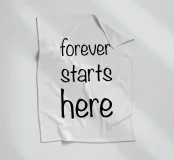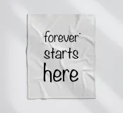 L'eternità inizia qui. Espressione d'amore e di San Valentino. Tipografia in nero e bianco (trasparente). È possibile cambiare il colore dello sfondo. Poster tipografico minimalista.