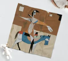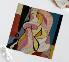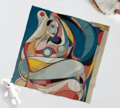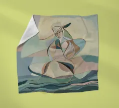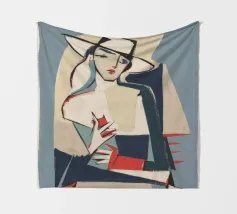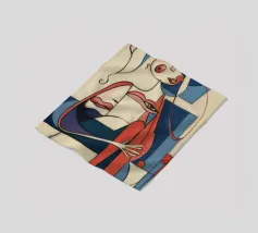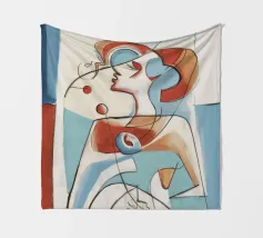 Quest'opera d'arte presenta una composizione contemplativa e introspettiva con un mix di forme geometriche e organiche. La tavolozza dei colori comprende blu, rosso e beige, creando un senso di equilibrio e armonia. La disposizione ponderata di forme e colori ne fa un'opera accattivante.