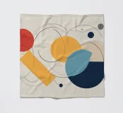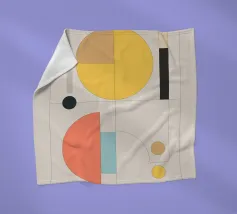 L'opera d'arte presenta una disposizione dinamica di forme geometriche dai colori vivaci. Cerchi, rettangoli e linee si intrecciano, creando un senso di movimento ed equilibrio.