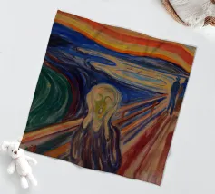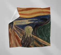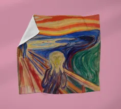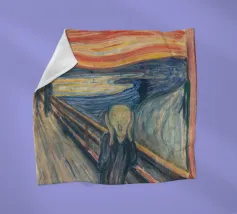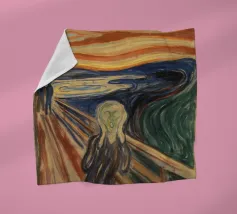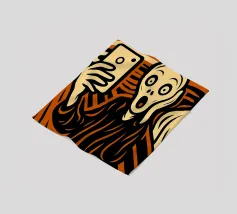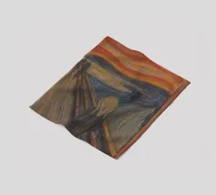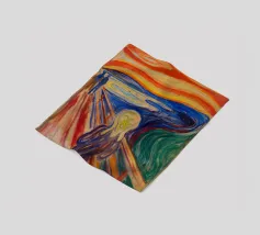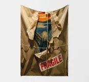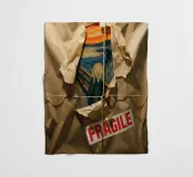 Quando la carta si strappa e rivela l'eterno urlo, ci si rende conto che nemmeno l'imballaggio industriale può contenere la crisi esistenziale. L'etichetta FRAGILE sembra più una diagnosi che una linea guida. Edvard Munch ne sarebbe felice, o forse terrorizzato di nuovo.