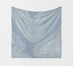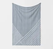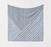 Disegno astratto con sezioni di linee bianche diagonali e verticali su sfondo azzurro, che creano un motivo geometrico dinamico. Ideale per progetti di arredamento moderno e design grafico.