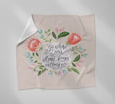 Fiori splendidamente disegnati a mano. Una grande frase al centro. Moderna calligrafia a pennello. Un motto di vita. Un motto con passione, calore e un atteggiamento positivo nei confronti della vita. Segui il richiamo del tuo cuore.