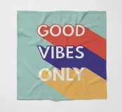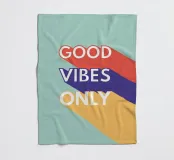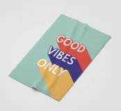 Una dichiarazione tipografica in tre potenti parole: GOOD - VIBES - ONLY. Ogni parola in un colore diverso, ogni linea con un'ombra lunga: visivamente forte, emotivamente chiaro. Lo sfondo verde pastello conferisce leggerezza, mentre il rosso, il blu e il giallo simboleggiano energia, calma e ottimismo.