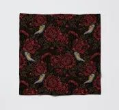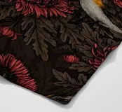 Fiori di crisantemo e uccelli codirosso dipinti a mano