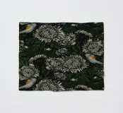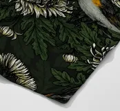 Fiori di crisantemo e uccelli codirosso dipinti a mano
