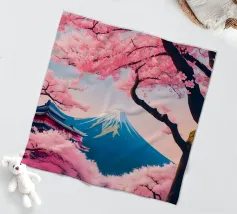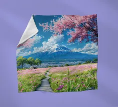 Una vista mozzafiato del maestoso Monte Fuji che si staglia nel cielo limpido di primavera. In primo piano, delicati fiori di ciliegio (sakura) danzano nel vento, conferendo alla scena una poetica leggerezza. La combinazione tra la forza della natura e la bellezza dei fiori simboleggia la transitorietà, l'armonia e il profondo legame tra la cultura giapponese e la natura. Questa immagine cattura perfettamente la magia della stagione della fioritura dei ciliegi, ideale per opere d'arte da parete, calendari o diari di viaggio. Suggerimento: perfetto per tutti coloro che sognano di viaggiare o che vogliono portare un pezzo di tranquillità e di estetica giapponese nella loro casa.