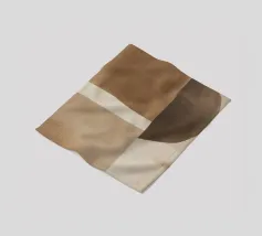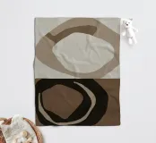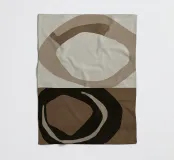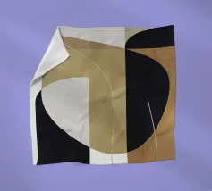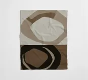 Una coppia di forme astratte domina la composizione in una combinazione di colori a due toni, evocando uno stile modernista. Le forme sono rese con bordi morbidi e una miscela di toni terrosi, creando un senso di calma ed equilibrio.