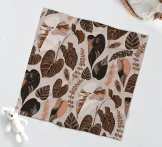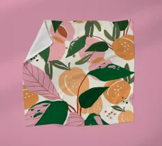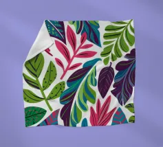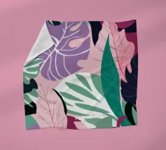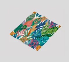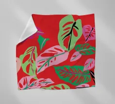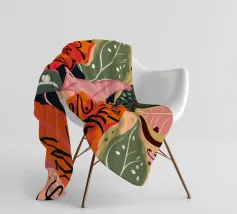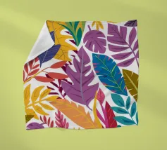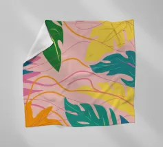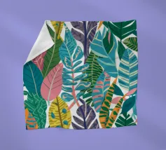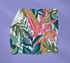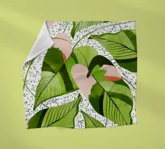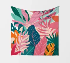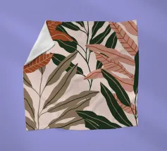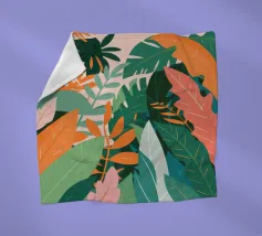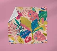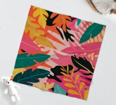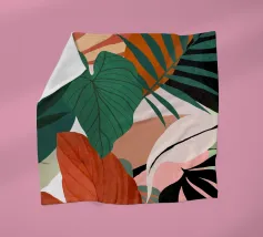 Questa vibrante opera d'arte presenta una composizione dinamica di foglie tropicali in colori audaci e contrastanti. L'opera presenta un mix di fogliame verde intenso, rosa tenue e arancione brillante, con intricati motivi di venature che aggiungono consistenza e dettagli. Il gioco di toni caldi e freddi crea un'atmosfera vivace ed energica, mentre lo sfondo pulito color crema permette alle foglie di risaltare in modo evidente. L'approccio grafico e stilizzato conferisce all'opera un'estetica moderna e giocosa, evocando la bellezza lussureggiante della natura in un design contemporaneo.