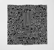 Un volto fatto di linee: Quest'opera trasforma un ritratto in un labirinto grafico. I contorni bianchi su sfondo nero ricordano la Op Art, la tipografia Bauhaus e l'arte vettoriale digitale. L'opera gioca con la percezione e l'identità - ridotta, ritmica, enigmatica. Un'immagine che non solo si guarda, ma che vuole essere decifrata. Un richiamo ideale per ambienti luminosi e minimalisti, progettati per coniugare intelletto ed estetica.