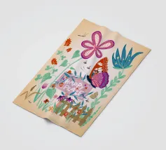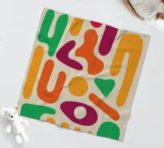 Questo disegno presenta una composizione astratta di linee e forme fluide in colori vivaci. Gli elementi sono disposti in modo armonioso e conferiscono al disegno un aspetto dinamico e giocoso.
