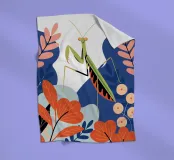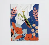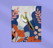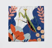 Lasciatevi affascinare dalla bellezza di una mantide religiosa in mezzo a un giardino colorato in questa illustrazione. I colori vivaci e il design dettagliato creano un'atmosfera unica e accattivante.
