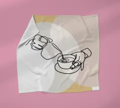 Un'illustrazione semplice e confortante di una mano che tiene una tazza gialla e calda di caffè o tè fumante, con un biscotto pronto per essere inzuppato. L'immagine cattura perfettamente il piacere semplice e tranquillo di un rituale mattutino.