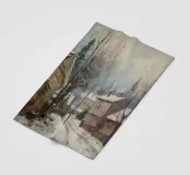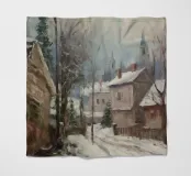 Una pittoresca mattina d'inverno in un tranquillo villaggio: le case coperte di neve, gli alberi slanciati e le lontane guglie delle chiese si stagliano dolcemente nella luce bluastra. Il sentiero tra la neve conduce l'occhio attraverso il tranquillo scenario ed evoca ricordi di tranquille giornate invernali. Il dipinto unisce nostalgia, tranquillità e bellezza naturale in colori armoniosi e pennellate raffinate.