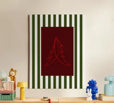 Un albero di Natale minimalista dal carattere festoso: sottili linee rosse su uno sfondo rosso intenso creano una silhouette moderna ed elegante. Questo disegno è perfetto per chi ama le decorazioni natalizie semplici, eleganti e artistiche. Combina calore e tranquillità - ideale per il soggiorno, il corridoio o come sottile dichiarazione stagionale sulla parete.