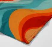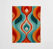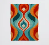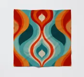 Quest'opera d'arte è un'illusione ottica ipnotica e un omaggio all'arte psichedelica e all'op art della fine degli anni '60 e dell'inizio degli anni '70. Forme curve e fluide in rosso fiammeggiante e arancione caldo incontrano i toni freddi del turchese e del blu-verde, creando una tensione dinamica, ardente ma acquatica. La simmetria verticale e i motivi stratificati a forma di goccia ricordano i disegni iconici di tessuti e carte da parati dell'epoca. Il motivo crea un'incessante attrazione visiva e sembra quasi respirare. Un richiamo visivo energico e ipnotico.