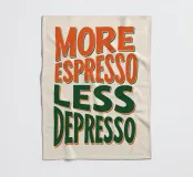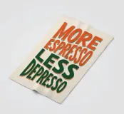 Un poster umoristico per tutti gli amanti della caffeina: "More Espresso, Less Depresso" porta il buon umore e una strizzatina d'occhio a qualsiasi parete. Con il suo aspetto disegnato a mano in arancione e verde scuro, è perfetto per la cucina, l'ufficio o il bar. Sia che si tratti di un regalo per i drogati di caffè o di un inizio di giornata motivante, questo poster è garantito per risollevare l'umore.