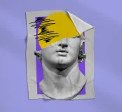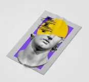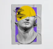 Un volto stilizzato ispirato ai busti antichi, attraversato da circuiti luminosi. Il passato incontra la tecnologia.