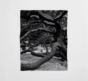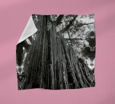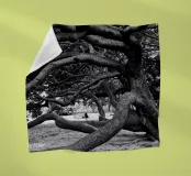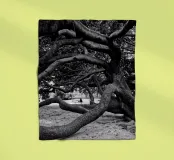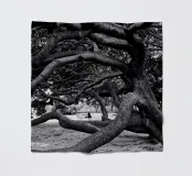 Fotografia di un albero vecchio e molto grande con una persona seduta su una panchina sotto l'albero.