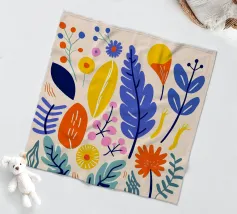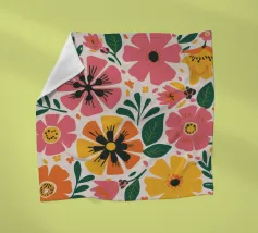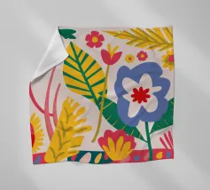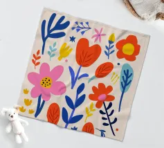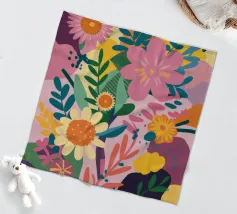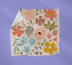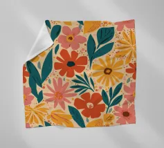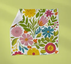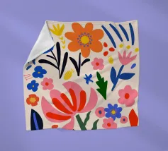 Una bella macchia di fiori selvatici stilizzati e stravaganti è illustrata in un affascinante stile ispirato all'arte popolare, con un delizioso mix di colori e forme che irradiano gioia e bellezza naturale.