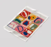 Una composizione astratta moderna e giocosa, caratterizzata da una disposizione a griglia di forme organiche e colorate. L'opera si presenta come un puzzle sofisticato ed equilibrato di forme e colori.