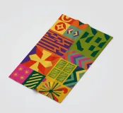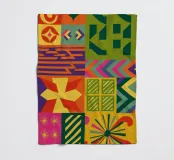Una composizione astratta audace ed energica, caratterizzata da una griglia di motivi geometrici colorati. Il vibrante mix di forme, dai soli alle scacchiere, crea una festa visiva gioiosa e dinamica.