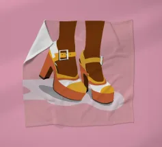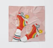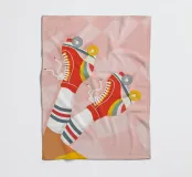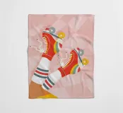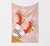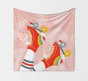Scatenatevi con questa giocosa opera d'arte di una ragazza pattinatrice!Questa vibrante illustrazione di ispirazione rétro presenta una ragazza in posa a gambe alzate con pantaloncini gialli, calzini sportivi bianchi con strisce blu e rosse e pattini a rotelle rossi con grafica arcobaleno. Su uno sfondo a scacchi distorto rosa pastello, questo disegno trasmette tutto il divertimento spensierato e le vibrazioni funky degli anni Settanta. Perfetta per le ragazze sportive e dallo spirito libero, questa opera d'arte aggiunge un tocco di colore e di attitudine a camerette, accessori, articoli di cancelleria e altro ancora. Ideale per tutti coloro che amano l'estetica retrò e il divertimento.