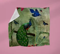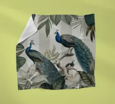 Questo collage vintage cattura l'eleganza dei tropici con una splendida composizione di lussureggianti foglie tropicali e frutti vivaci. Al centro, due splendidi pavoni si ergono con grazia, con le loro piume iridescenti che brillano nei toni del blu, del verde e dell'oro. Il maestoso piumaggio dei pavoni contrasta con il ricco fogliame, aggiungendo un senso di raffinata bellezza. Le sottili texture vintage dello sfondo esaltano l'eleganza generale, mentre i colori vibranti delle foglie e dei frutti danno vita alla scena, evocando un paradiso esotico senza tempo.