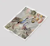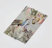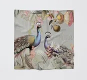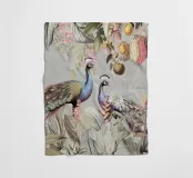 Questo collage vintage cattura l'eleganza dei tropici con una splendida composizione di lussureggianti foglie tropicali e frutti vivaci. Al centro, due splendidi pavoni si ergono con grazia, con le loro piume iridescenti che brillano nei toni del blu, del verde e dell'oro. Il maestoso piumaggio dei pavoni contrasta con il ricco fogliame, aggiungendo un senso di raffinata bellezza. Le sottili texture vintage dello sfondo esaltano l'eleganza generale, mentre i colori vibranti delle foglie e dei frutti danno vita alla scena, evocando un paradiso esotico senza tempo.