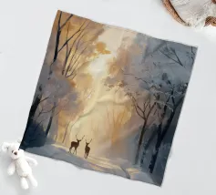 Idilliaco poster invernale con due conigli seduti in una foresta innevata. I fiocchi di neve che cadono dolcemente e i maestosi abeti creano un'atmosfera tranquilla e fiabesca. Questo murale combina motivi animali e natura invernale ed è perfetto per decorare il soggiorno, la camera da letto o la stanza dei bambini. Un'opera d'arte che porta la pace, l'intimità e la magia dell'inverno in ogni casa, ideale per gli amanti degli animali e della natura.