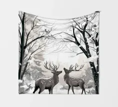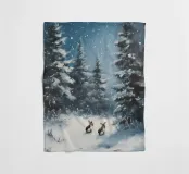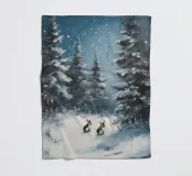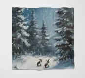 Idilliaco poster invernale con due conigli seduti in una foresta innevata. I fiocchi di neve che cadono dolcemente e i maestosi abeti creano un'atmosfera tranquilla e fiabesca. Questo murale combina motivi animali e natura invernale ed è perfetto per decorare il soggiorno, la camera da letto o la stanza dei bambini. Un'opera d'arte che porta la pace, l'intimità e la magia dell'inverno in ogni casa, ideale per gli amanti degli animali e della natura.