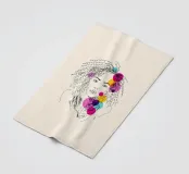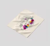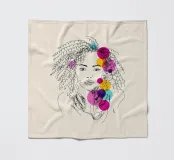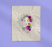 Un audace disegno al tratto di una giovane donna sicura di sé con voluminosi capelli ricci, resi con tratti profondi. Il suo sguardo è calmo ma potente e la sua bellezza naturale si irradia dal centro della composizione. Cerchi sovrapposti dai colori vivaci - rosa caldo, giallo solare, arancione intenso e lavanda - la circondano come un'aura, simboleggiando gioia, resilienza e identità. Il contrasto tra l'espressivo disegno a inchiostro e gli schizzi di colore in stile pop crea un senso di equilibrio dinamico e di moderna eleganza.