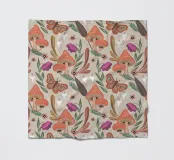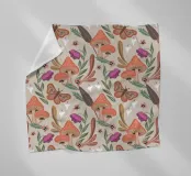 Illustrazione carina di funghi rossi, farfalle, fiori e piante botaniche con nome