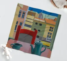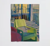 Un balcone assolato reso con luci e ombre drammatiche, dove il silenzio parla più delle parole grazie a una composizione minimalista.