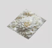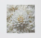 Questa opera d'arte digitale mozzafiato cattura la bellezza pura ed elegante delle rose bianche in una splendida composizione dettagliata. Il punto focale è costituito da un fiore centrale a più strati, i cui intricati petali si dispiegano per rivelare un nucleo morbido e dorato. Intorno ad esso ci sono innumerevoli altre rose, ognuna resa con dettagli squisiti, che creano un senso di profondità e consistenza. I toni incontaminati del bianco e del crema evocano sentimenti di pace, serenità e grazia senza tempo, rendendo questo pezzo perfetto per l'arredamento della casa, per i matrimoni o per qualsiasi spazio che richieda un tocco di classica raffinatezza floreale. Questo pezzo è una celebrazione