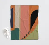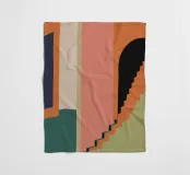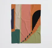 Un'opera architettonica astratta incentrata su scale e piani geometrici in una calda tavolozza di rosa, arancio e terracotta. La composizione gioca con luci e ombre, creando un senso di infinita e tranquilla ascesa.