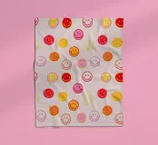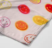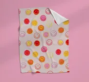 Il motivo colorato Faccine sorridenti è un semplice ma accattivante motivo luminoso nei colori rosa, arancione, giallo e rosso. Presenta molte facce sorridenti che mettono di buon umore. Motivo felice e ottimista ispirato allo stile retrò anni '70 di showmemars