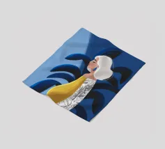 Questa opera d'arte raffigura una persona con capelli corti e biondi che indossa una giacca floreale e tiene in mano un libro. Lo sfondo giallo brillante ne esalta l'essenza chic ed elegante.