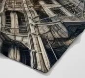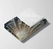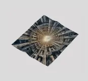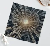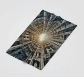 Un design architettonico intricato che forma una struttura a tunnel con simmetria a raggiera, che converge verso una luce incandescente al centro. La prospettiva crea profondità e un'estetica ipnotica e futuristica.